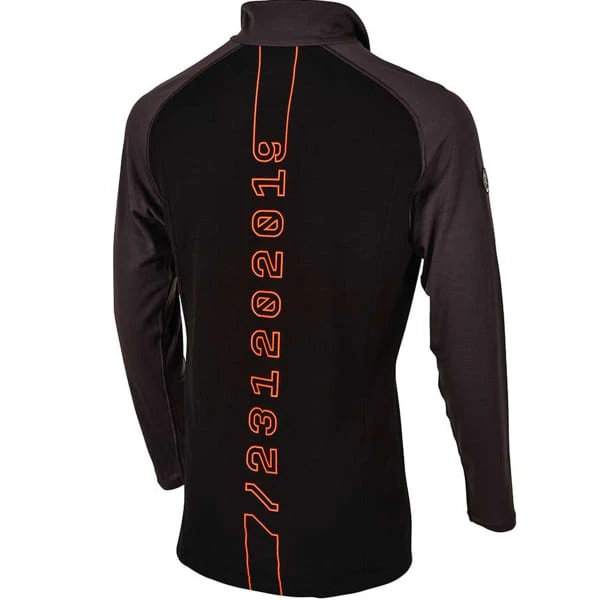Made of high quality Mrinos wool , this long sleeve top with a high zip collar feels warm and soft against the skin. Mrinos wool is full of assets as it is stretchy, breathable, antibacterial and thermorgulating, not to mention ecological. So this top keeps the skier dry and warm, but also cool.
